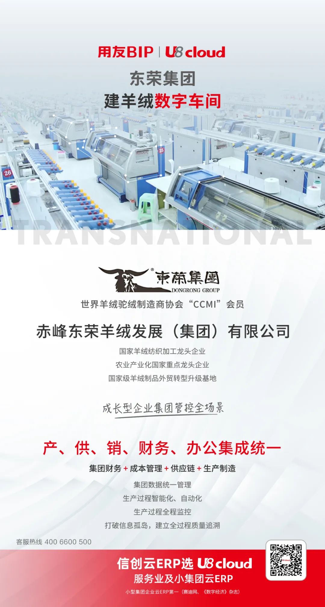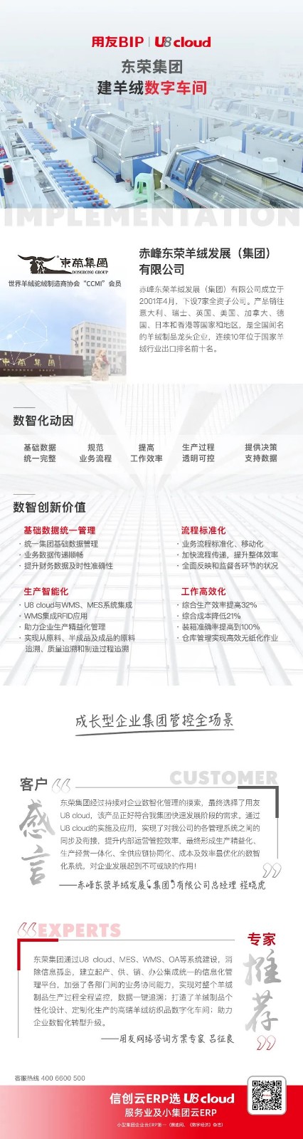赤峰东荣羊绒发展(集团)有限公司总经理程晓虎:东荣集团经过持续对企业数智化管理的摸索,最终选择了用友U8 cloud,U8 cloud符合集团快速发展阶段的需求。