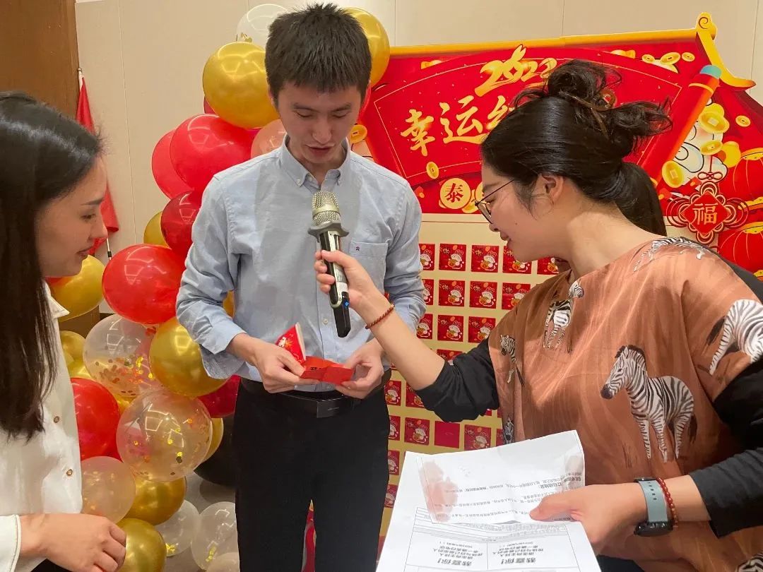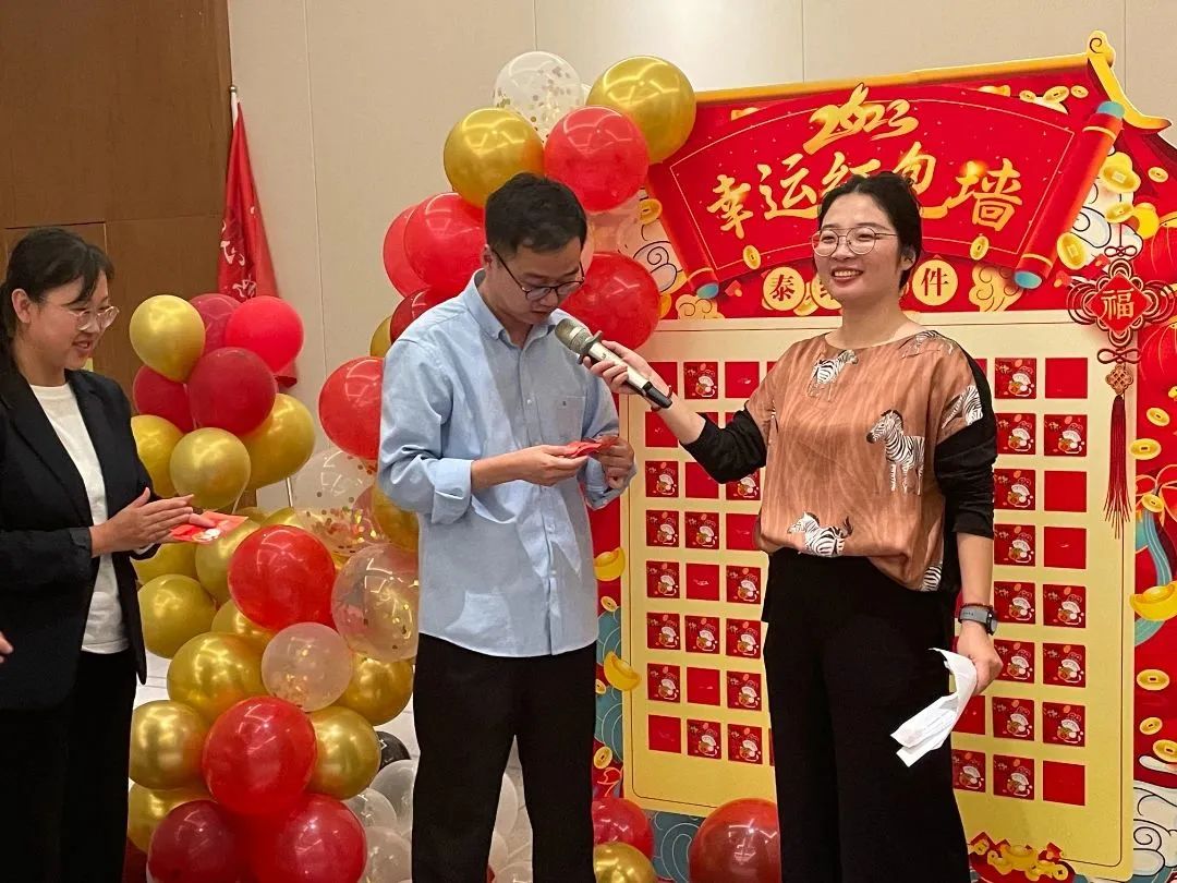 公司不仅准备了丰盛的晚宴,还为大家准备了可爱的伴手礼、欢乐游戏、抽取红包墙礼品等环节。大家在欢声笑语中度过了一个愉快的晚宴时光。